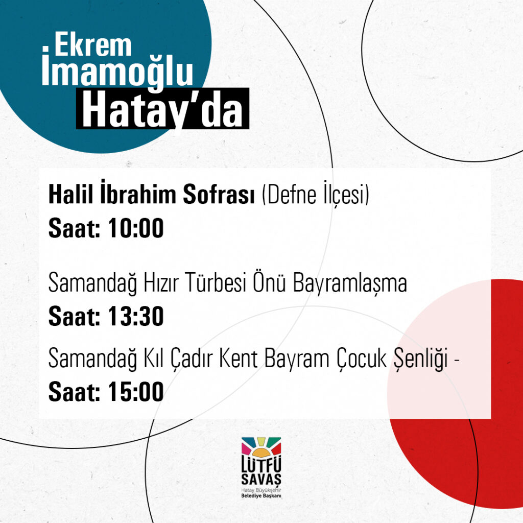 Hatay Büyükşehir Belediye Başkanı Lütfü Savaş, Konuyla ilgili yaptığı açıklamada: Millet İttifakı’mızın Cumhurbaşkanı Yardımcısı Adayı Sayın Ekrem İmamoğlu, Ramazan Bayramı’nın birinci günü (yarın) Hatay’ımızda hemşehrilerimiz ile buluşacak ve hep birlikte bayramlaşacağız. Halil İbrahim Sofrasına tüm Hataylı hemşehrilerimizi bekliyoruz. 14 Mayıs’ı da bir bayram gibi yaşayarak tüm Türkiye’nin aynı sofrada buluşması dileğiyle…”dedi. Mehmet Emin MEMES