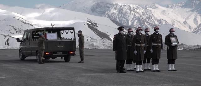 Kuzey Irak’ta düzenlenen ‘Pençe Yıldırım Harekatı’nda Dare Tepe Üs Bölgesi’nde meydana gelen silah kazasında şehit düşen Piyade Uzman Çavuş Halil İbrahim Çete’nin (27) cenazesi, Hakkari Dağ ve Komando Tugay Komutanlığı’nda düzenlenen törenin ardından memleketi Hatay’a uğurlandı.